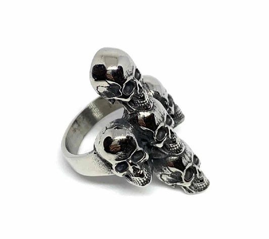Bague têtes de mort empilées B022