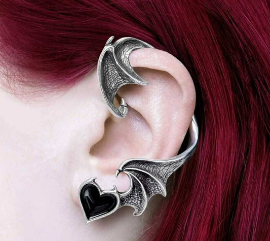 Boucle / Tour d'oreille Alchemy aile de chauves-souris & coeur noir E445